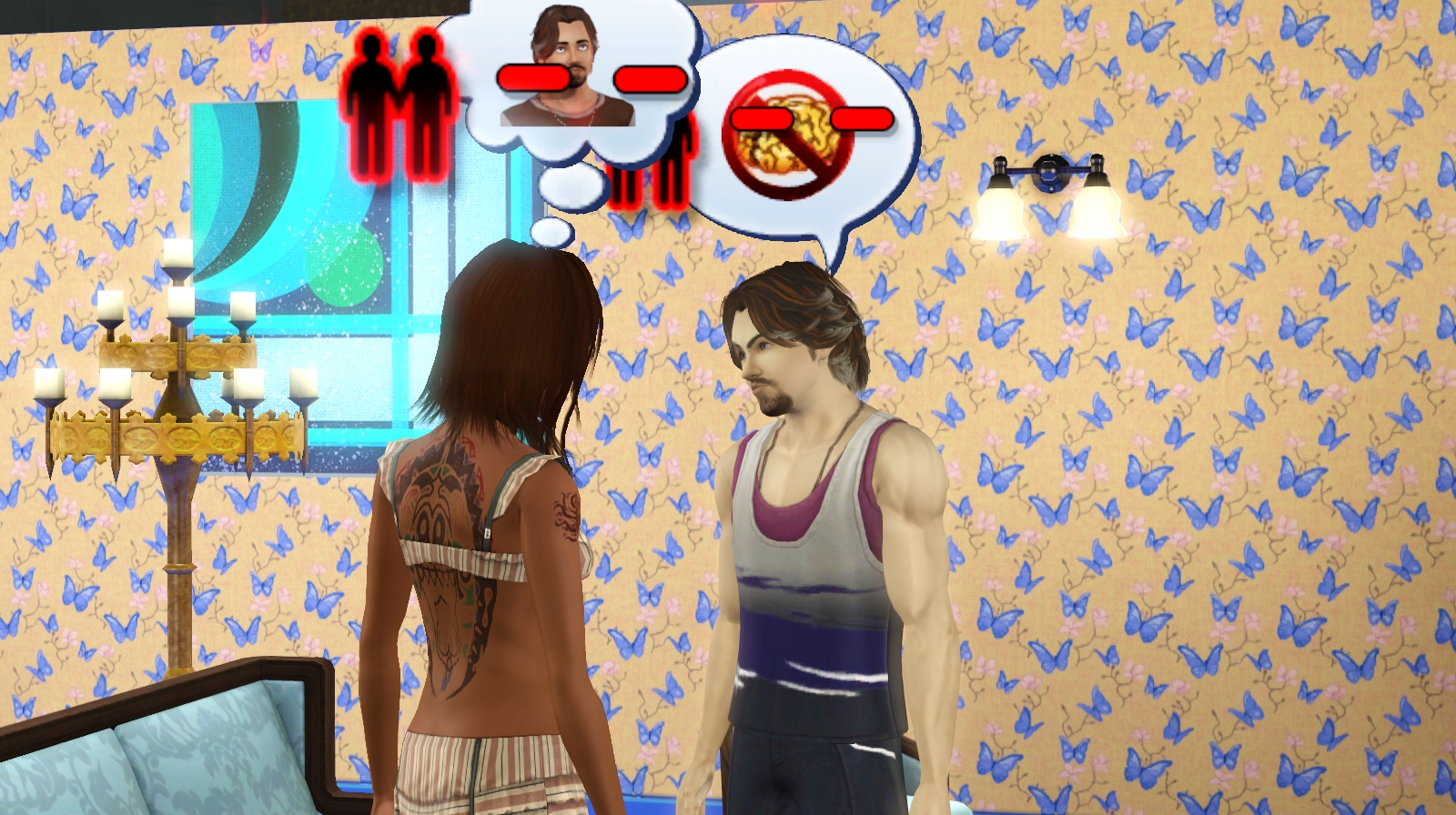 ReplyDeleteI think Crystal's Hopeless Romantic Trait helped bump that score up during the slow dances, but she still doesn't interact with him much so that score is staying put. Chandell had a negative score until he sat down and played video games with her and that moved her score up tremendously. Kazzata accused him of being a vampire also and he is starting to act negatively on accusations. Anyone doing that is going to have a hit on the score.
